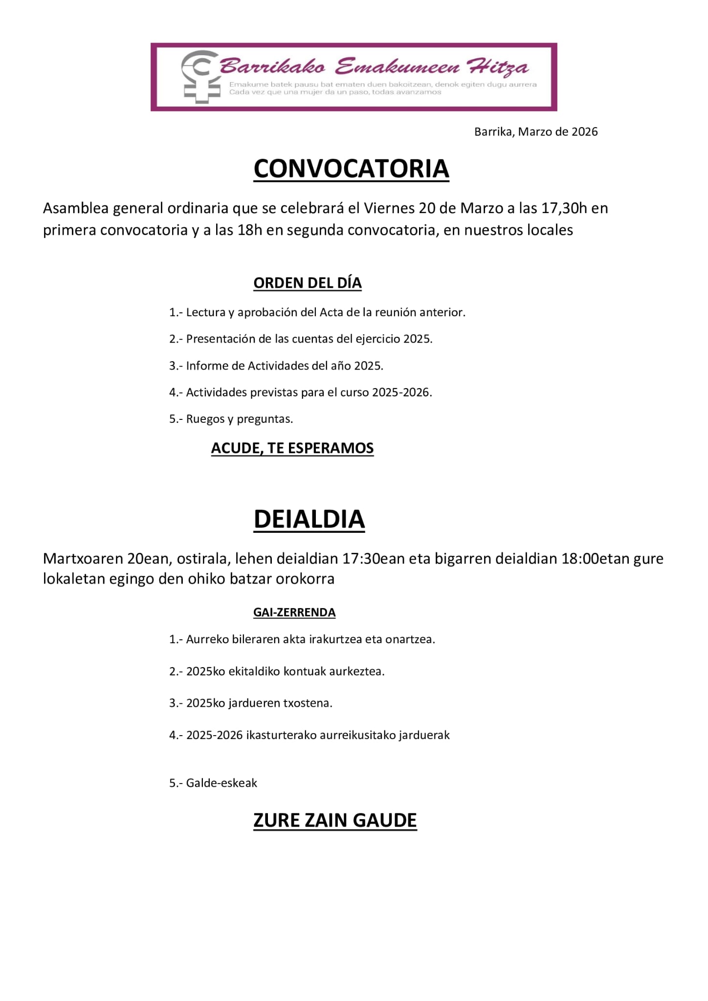 CONVOCATORIA A LA ASAMBLEA GENERAL ORDINARIA 2026